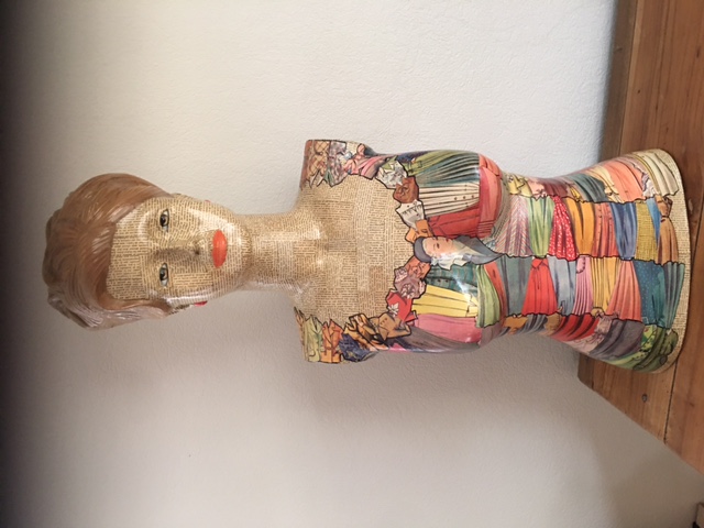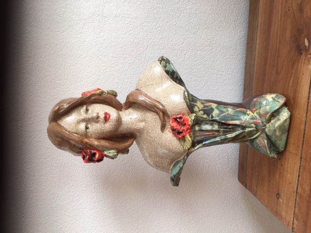 Les mannequins utilisés sont les bustes de couture ou de vitrine (avec ou sans tête, à poser ou sur pied, selon mes trouvailles...) pour une présentation sur support horizontal.